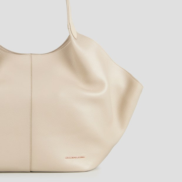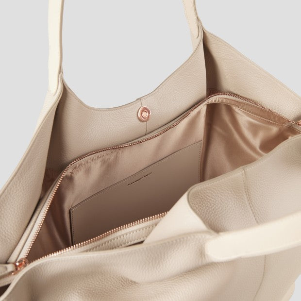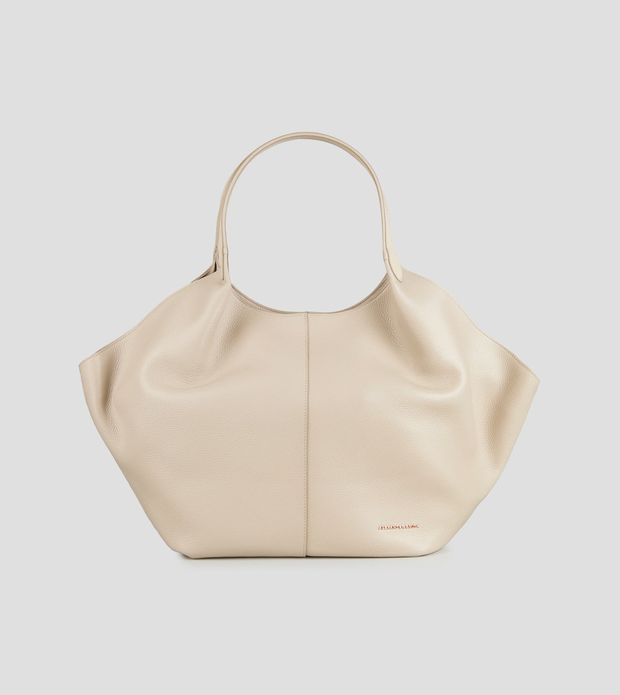 Borsa di grandi dimensioni realizzata in morbida pelle di vitello pieno fiore. L'articolo ha due comodi manici che consentono la perfetta indossabilita' sotto spalla. E' possibile cambiare il modello della borsa (riducendone anche le dimensioni) tramite laccetto con moschettone inserito all'interno.
