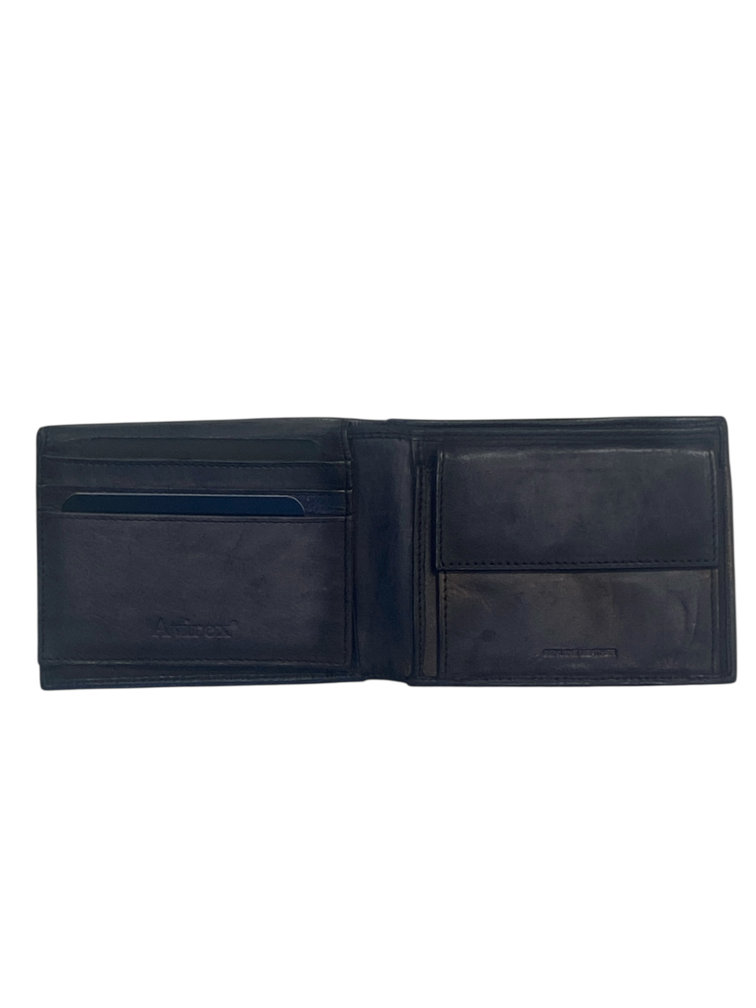 Portaafoglio realizzato in morbido cuoio dal trattamento "slavato". Otto slots per carte di credito, tre tasche per documenti,portamonete e doppio scomparto per banconote.