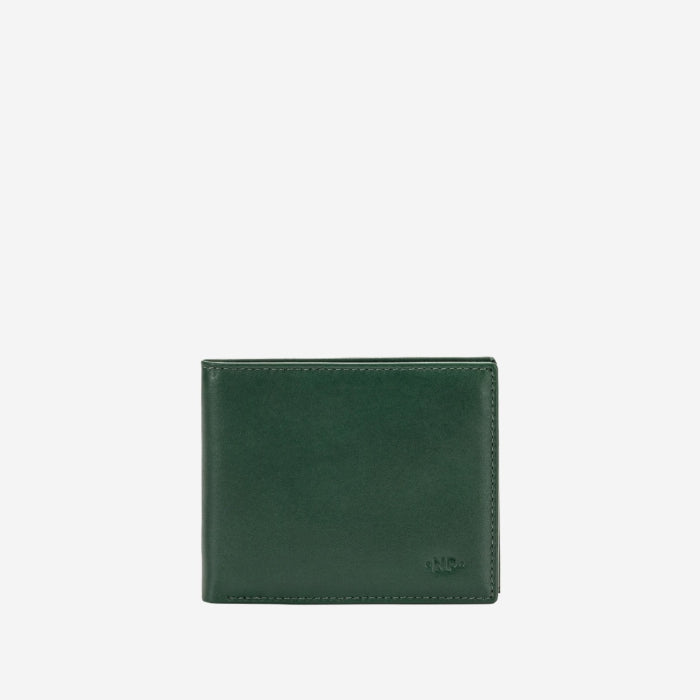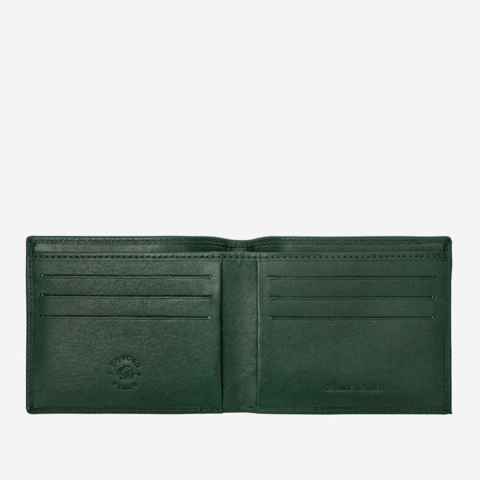 Portafoglio artigianale di piccole dimensioni, realizzato in morbida pelle di vitello. Sei slots per carte di credito, 2 tasche per documenti e doppio scomparto per banconote.