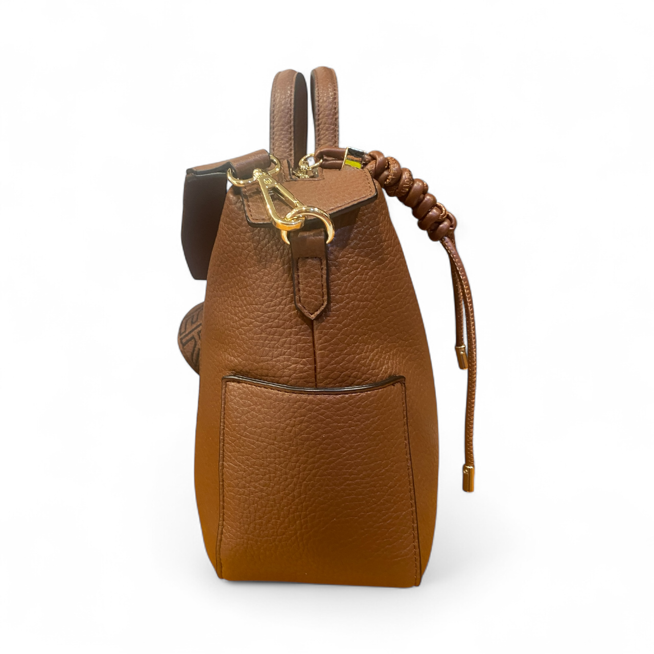 Borsa realizzata in resistente materiale sintetico con effetto leggermente "martellato". Due manici piu' tracolla a nastro logata.. All'interno vari spazi organizzati.