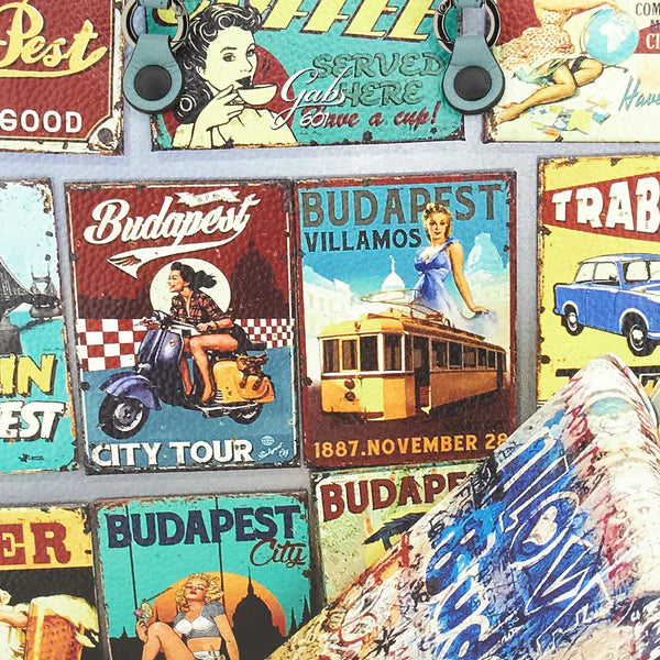 L'Iiconica G3, da borsa piatta, diventa una shopper, un bauletto ed infine uno zaino. Da portare comodamente con una tracolla a nastro regolabile e removibile. La borsa e' realizzata interamente in pelle di vitello, sia sul retro, che sul fronte stampato. La linea TRIP e' un'icona del brand, composta da stampe a tema viaggio.