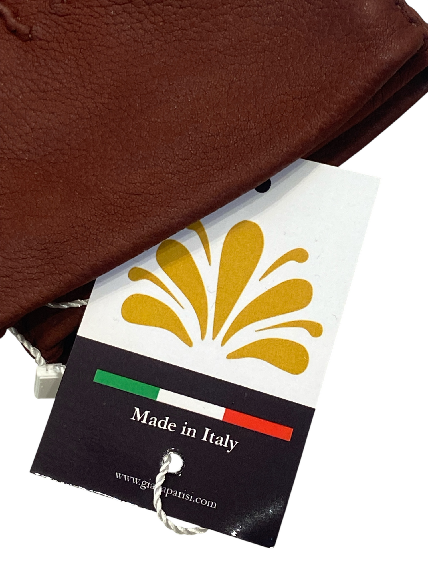 Guanto realizzato con manifattura artigianale in morbidissima pelle di cervo, foderato in 100% CACHEMIRE per il massimo del calore e del comfort. Dita cucite a mano. Ogni paio di guanti e' un tributo alla bellezza dell'artigianato italiano ed un simbolo di eleganza e stile senza tempo.