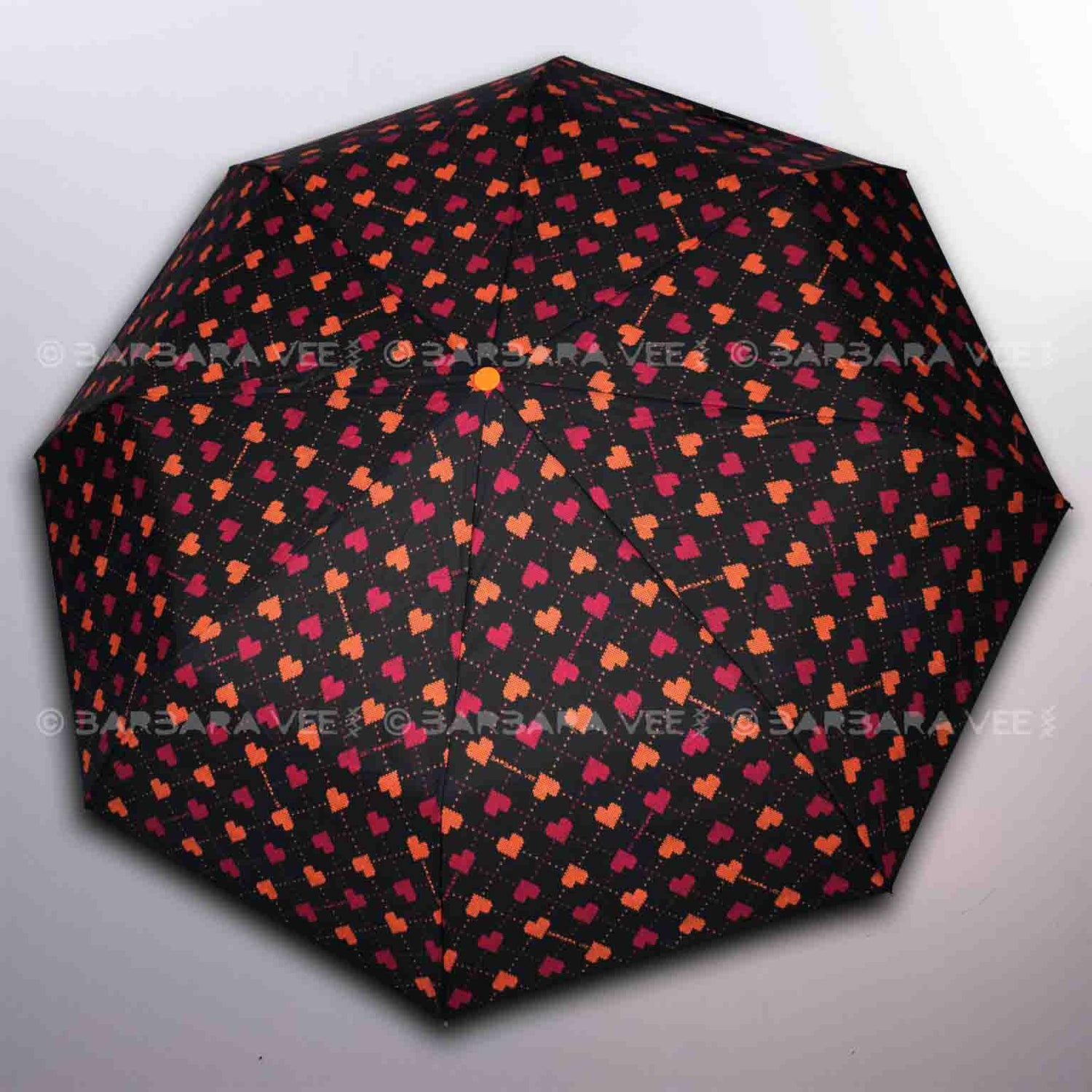 Ombrello mini con apertura manuale in tessuto poliestere di alta qualita' ad asciugatura ultra rapida. Fusto ANTIVENTO, bacchette con terminali in fibra ed impugnatura lucida in tinta sagomata "HEART".