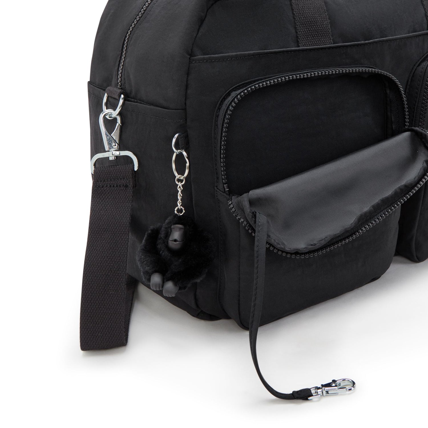 Borsone weekender realizzato in leggerissimo tessuto tecnico resistente ed idrorepellente. La dimensione media di questo borsone lo rende un'opzione versatile per gite fuori porta, viaggi di lavoro o giornate di sport. E' dotato di ben 3 tasche frontali esterne chiuse con zip, 2 tasche laterali per borraccia ed ombrello, uno scomparto imbottito porta Pc da 15'' e vari spazi organizzati interni.