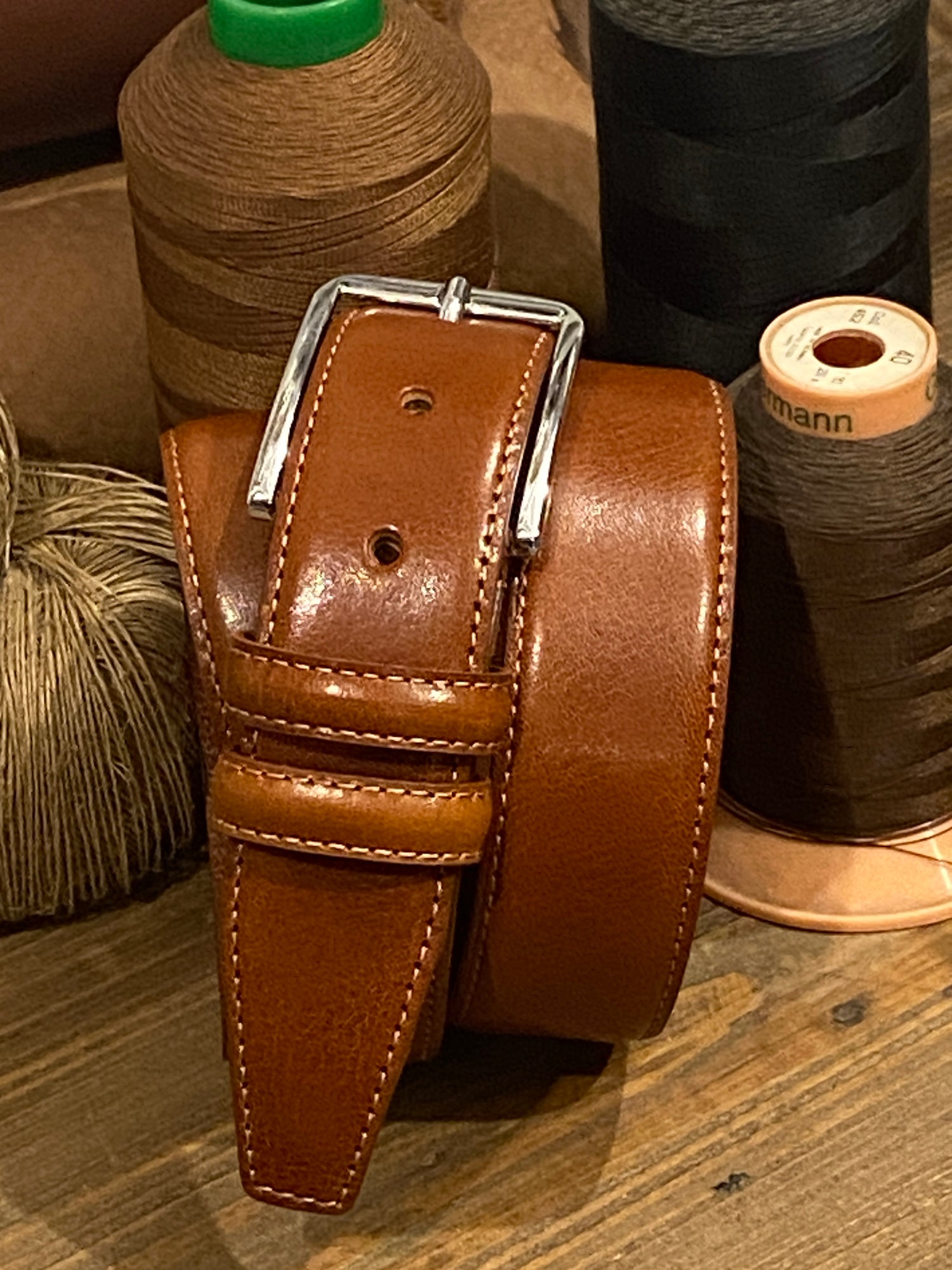 Cintura di nostra produzione realizzata a mano in vitello pieno fiore proveniente da pellame conciato in Toscana con TRATTAMENTO VEGETALE senza l'utilizzo di sostanze nocive e nel rispetto dell'ambiente.