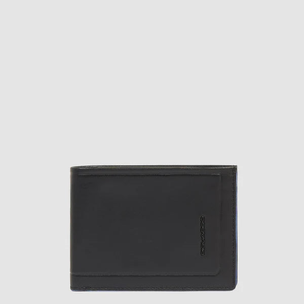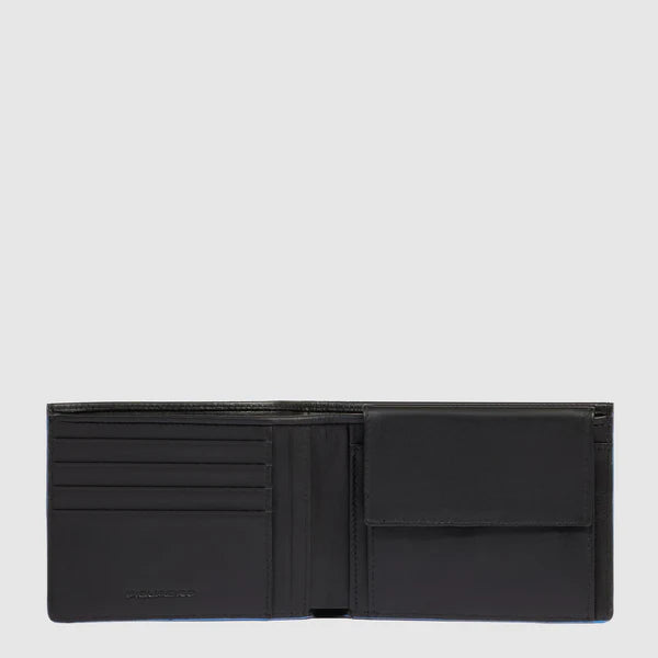 Portafoglio uomo Piquadro con porta monete, porta carte di credito con protezione anti-frode RFI e doppio scomparto per banconote.