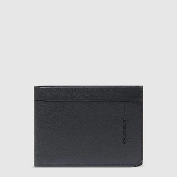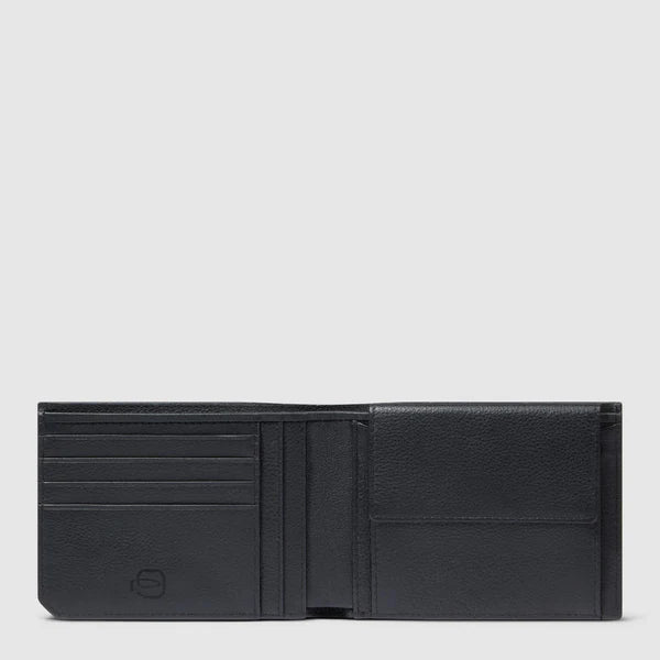 Portafoglio uomo Piquadro con porta monete, porta carte di credito con protezione anti-frode RFI e doppio scomparto per banconote.