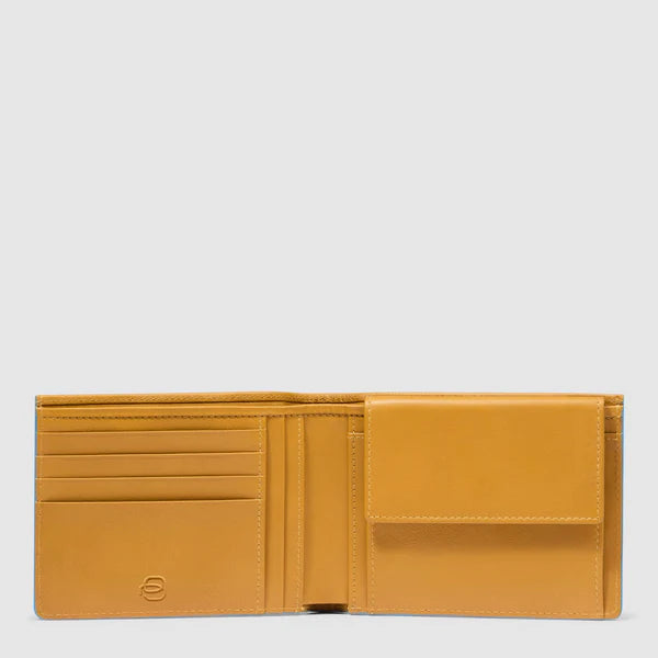 Portafoglio uomo Piquadro con porta monete, porta carte di credito con protezione anti-frode RFI e doppio scomparto per banconote.