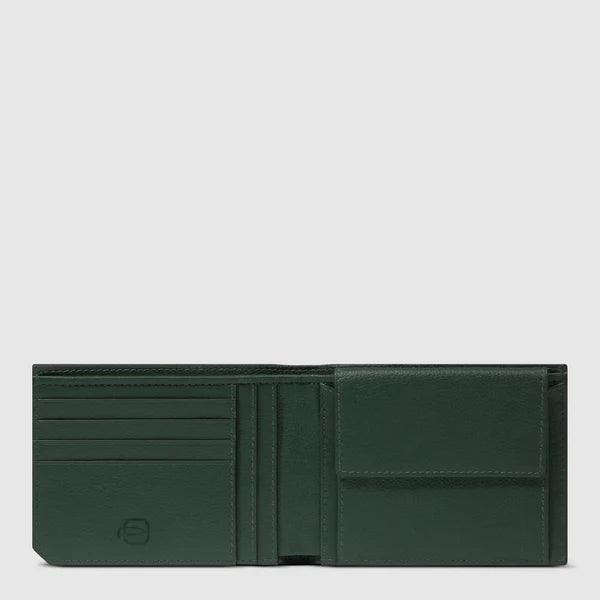 Portafoglio uomo Piquadro con porta monete, porta carte di credito con protezione anti-frode RFI e doppio scomparto per banconote.