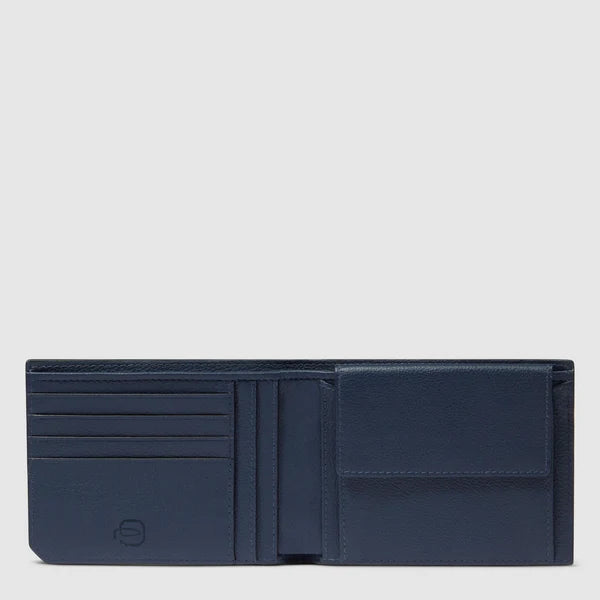 Portafoglio uomo Piquadro con porta monete, porta carte di credito con protezione anti-frode RFI e doppio scomparto per banconote.
