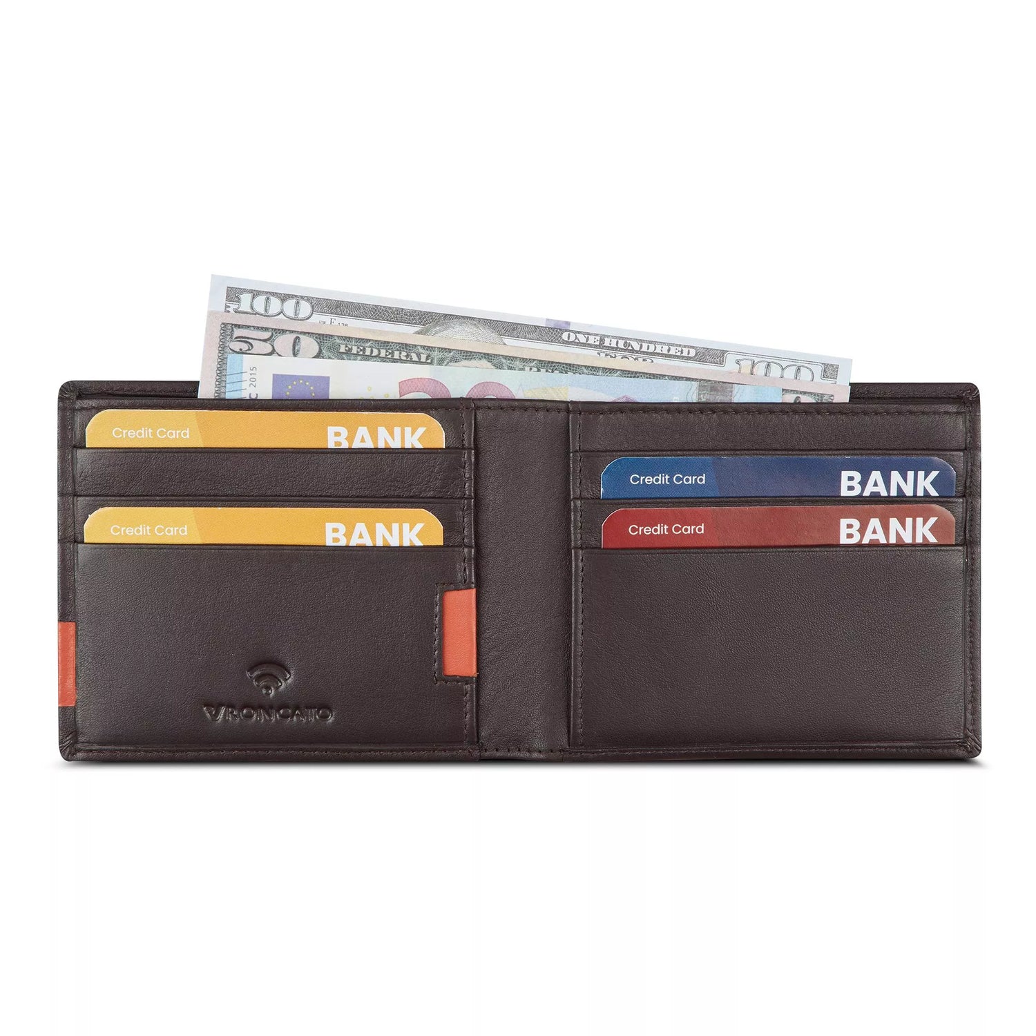 Portafoglio di piccole dimensioni realizzato in morbida pelle di nappa. Sei slots per carte di credito, 2 spazi per documenti e porta banconote con divisorio.
